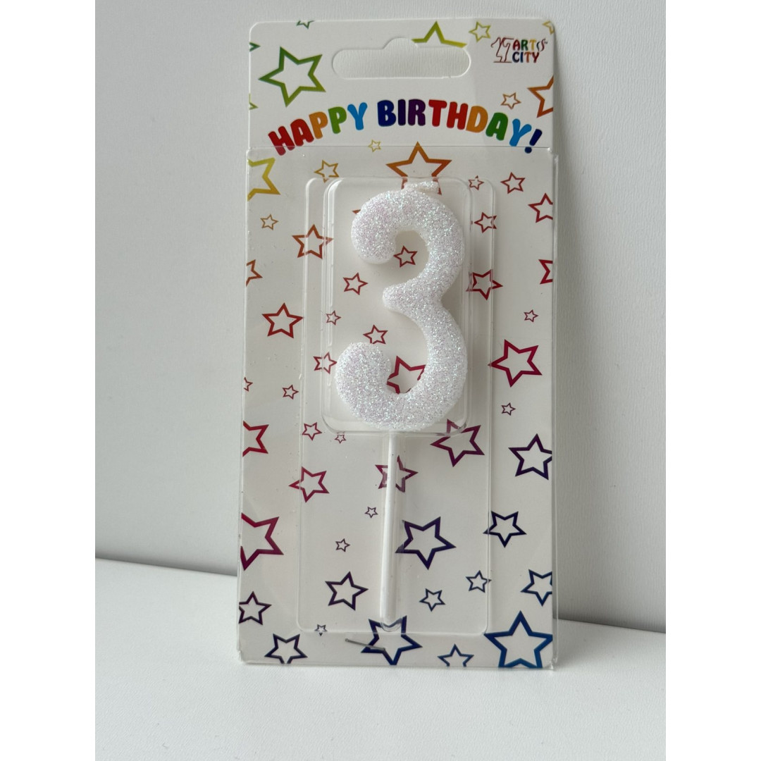 Свічка цифра біла 3