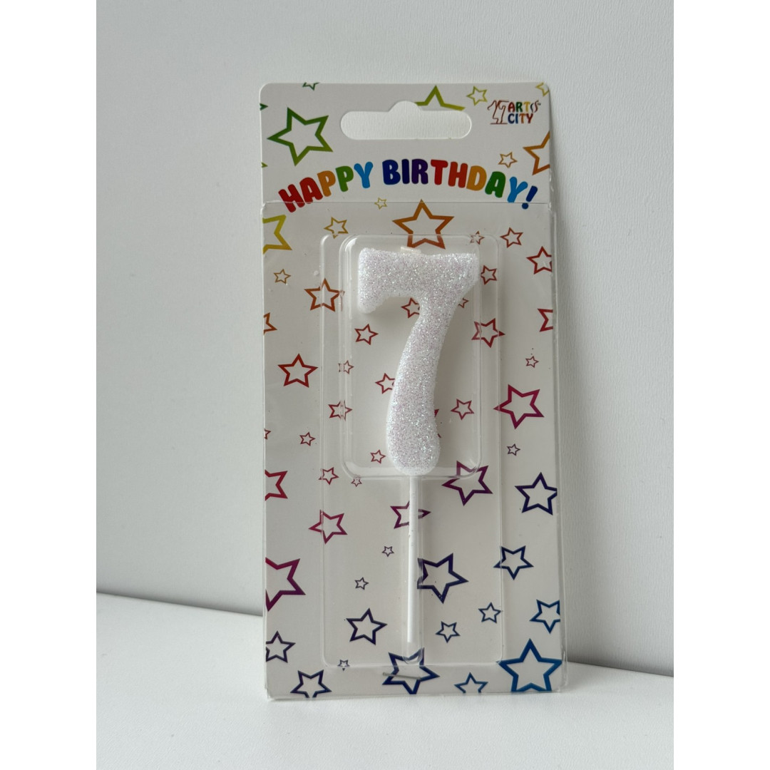 Свічка цифра біла 7