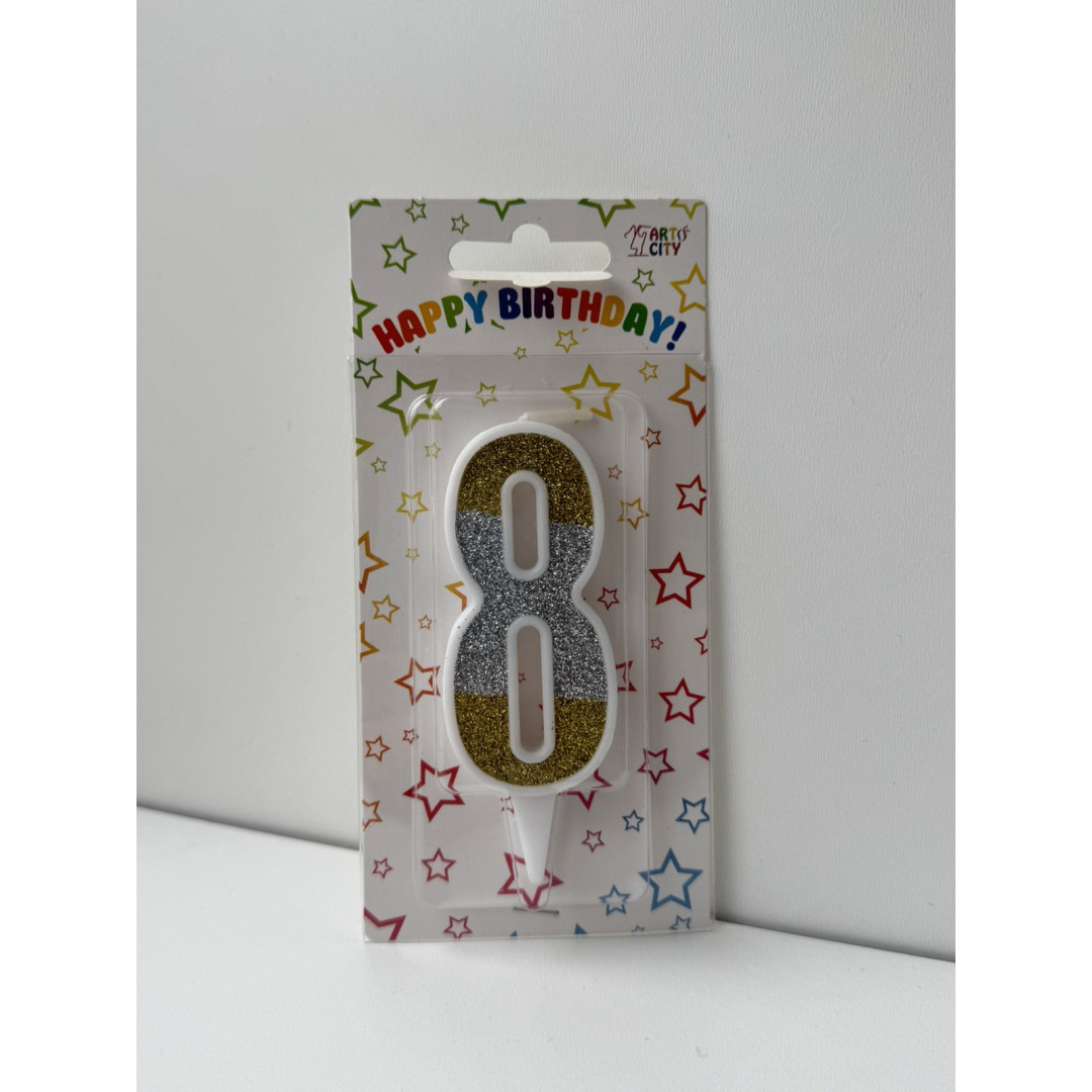 Свічка цифра біла сріб-зол глітер 8