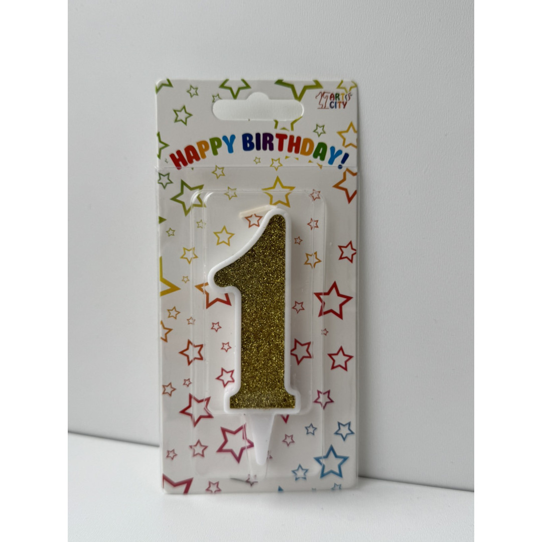 Свічка цифра біла золотий глітер 1