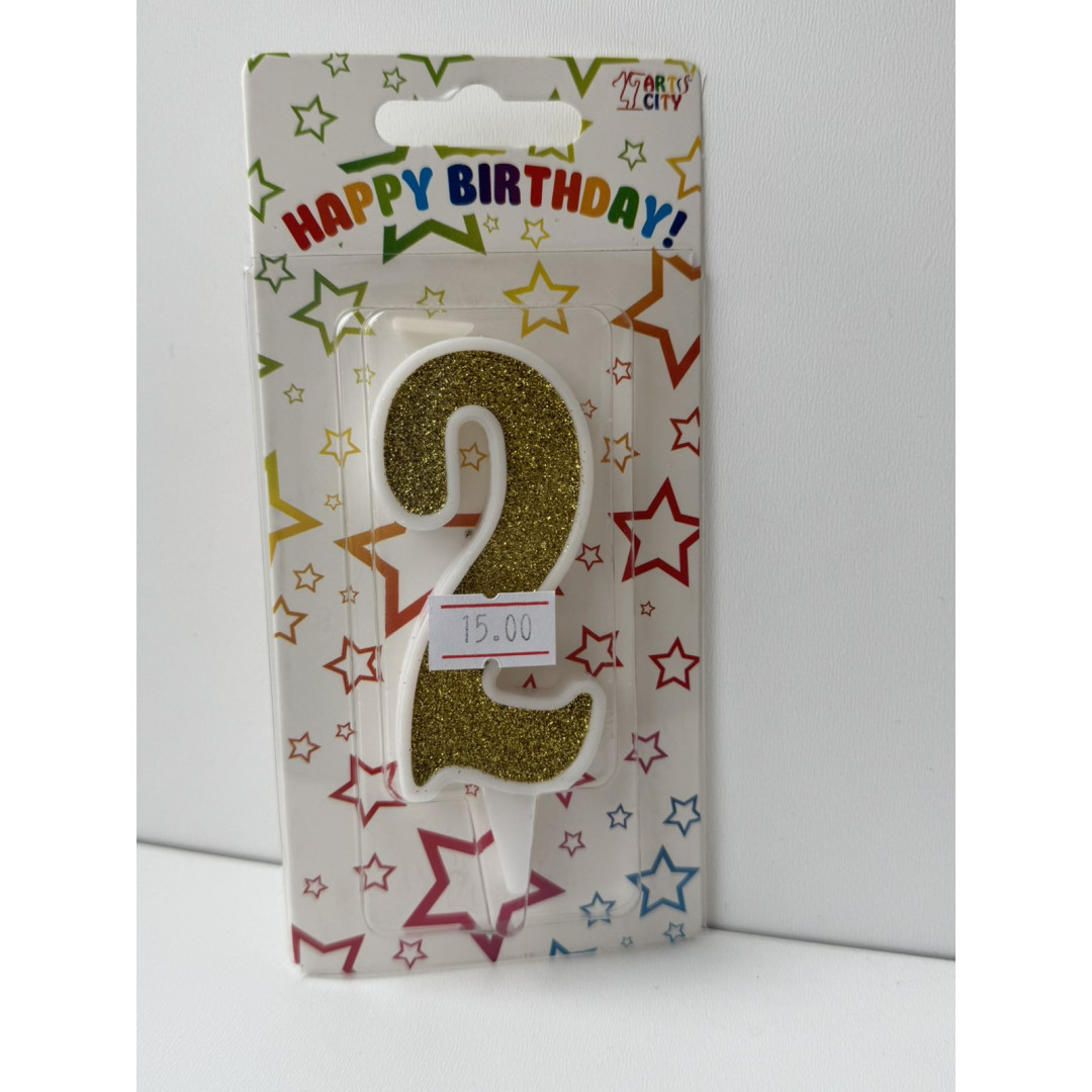 Свічка цифра біла золотий глітер 2