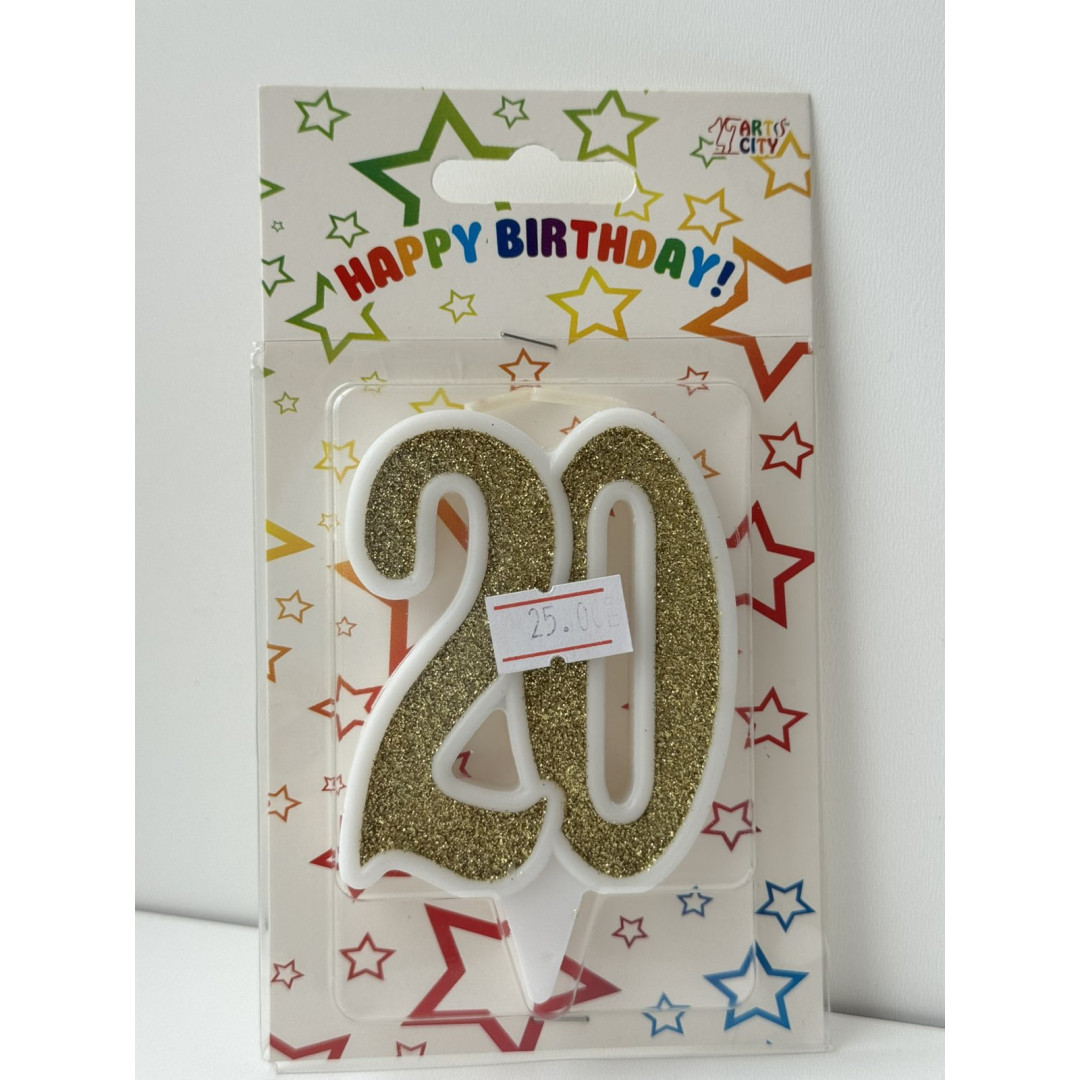 Свічка цифра біла золотий глітер 20