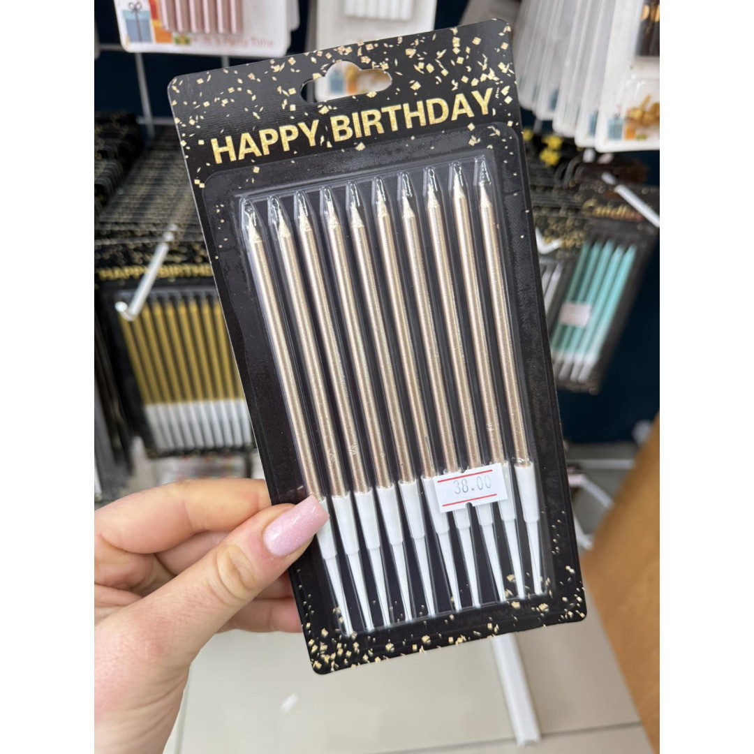 Свічки 10 шт прямі гладкі шампань хром