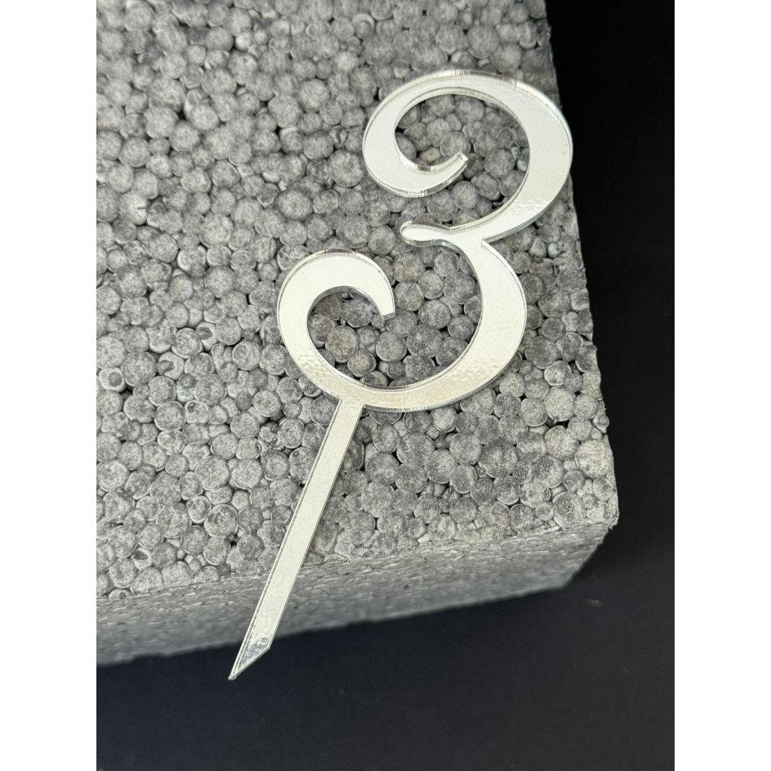 Топер пластик "3"-срібло