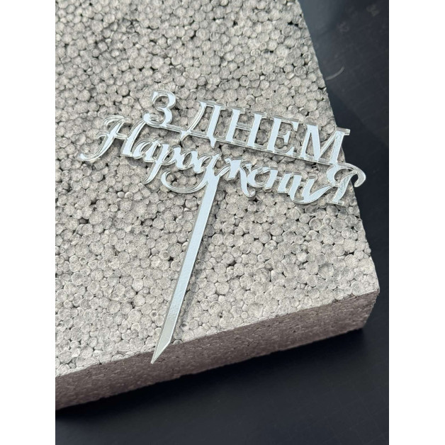Топер пластик "З днем народження "-срібло